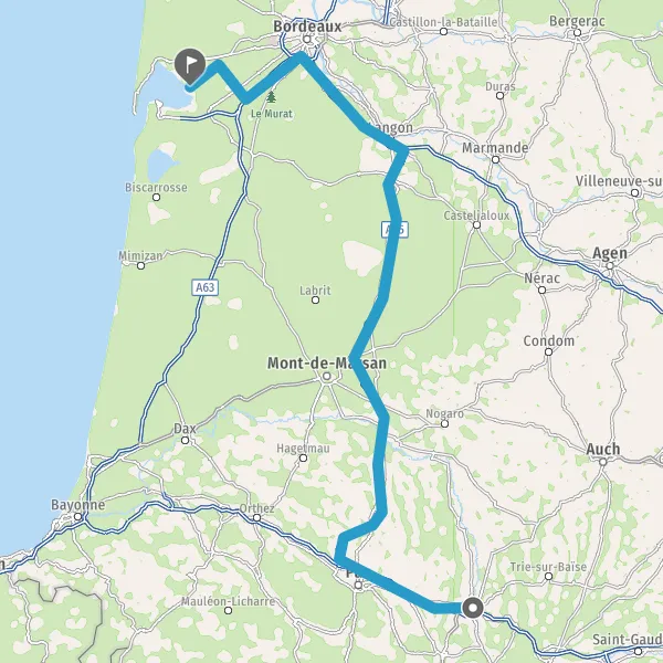 Prendre à droite et rejoindre A63. Continuer sur 22 kilomètres
