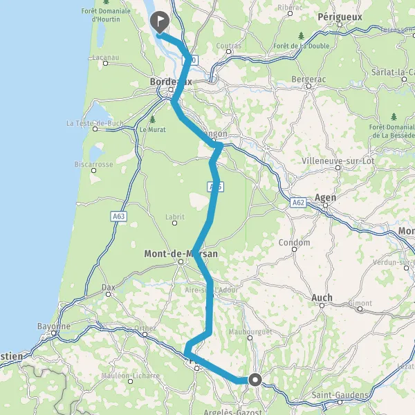 Prendre à droite et rejoindre A65. Continuer sur 150 kilomètres