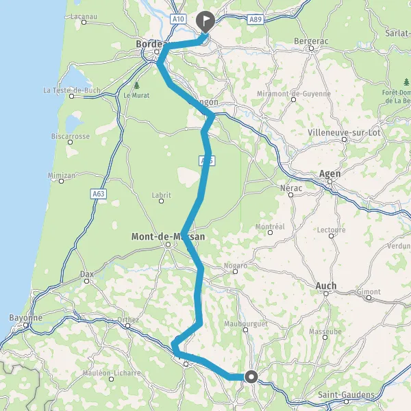 Prendre à droite et rejoindre A65. Continuer sur 150 kilomètres