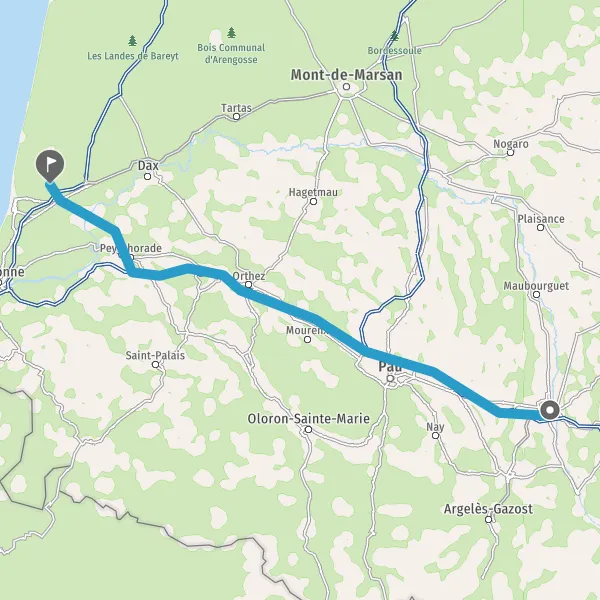 Continuer et rejoindre A64 E80. Continuer sur 102 kilomètres