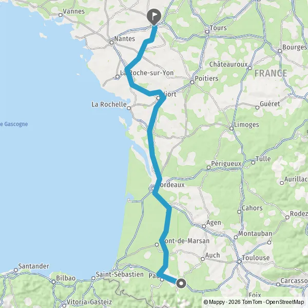 Prendre à droite et rejoindre A65. Continuer sur 150 kilomètres