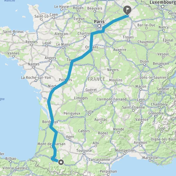 Prendre à droite et rejoindre A65. Continuer sur 150 kilomètres