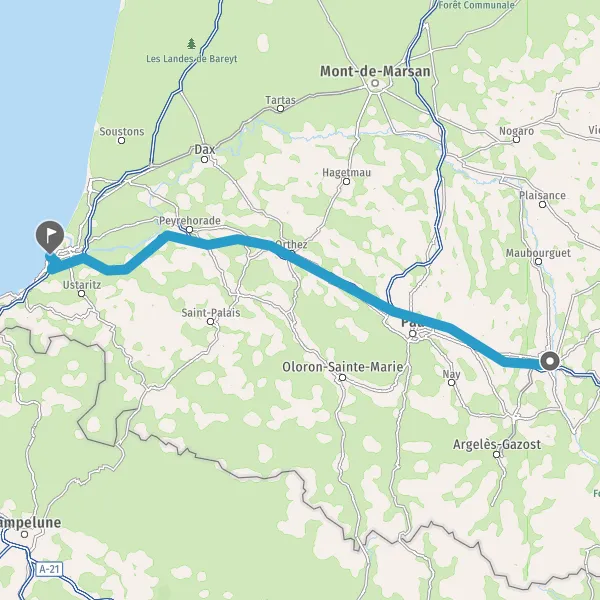 Continuer et rejoindre A64 E80. Continuer sur 136 kilomètres