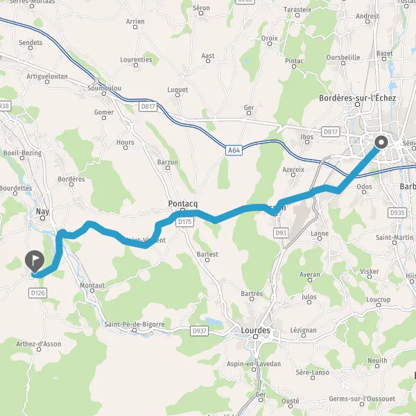 Tourner à droite sur D412 (Route de Coarraze) et continuer sur 6,4 kilomètres