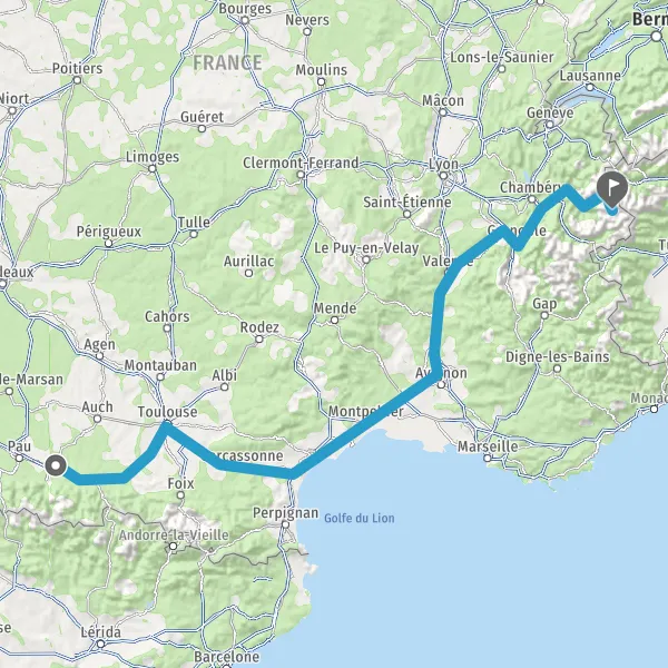 Prendre à droite et rejoindre A64. Continuer sur 141 kilomètres