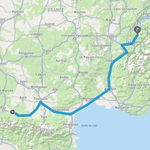 Prendre à droite et rejoindre A64. Continuer sur 141 kilomètres