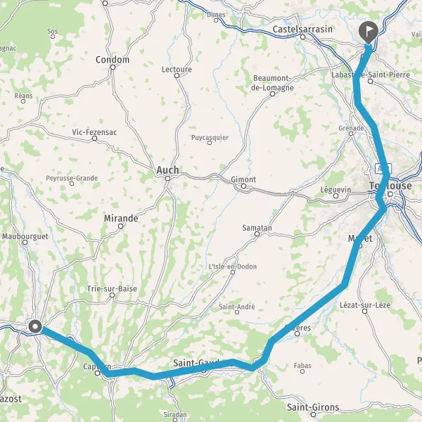 Prendre à droite et rejoindre A62. Continuer sur 33 kilomètres