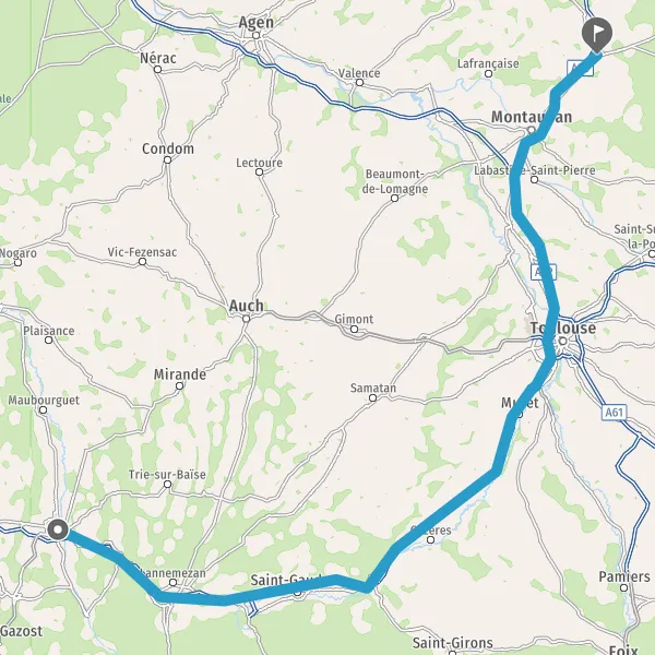Prendre à droite et rejoindre A64. Continuer sur 141 kilomètres