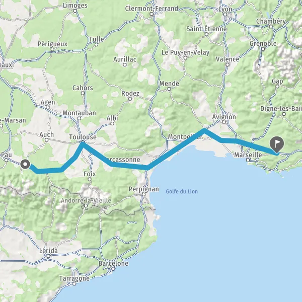 Prendre à droite et rejoindre A64. Continuer sur 141 kilomètres