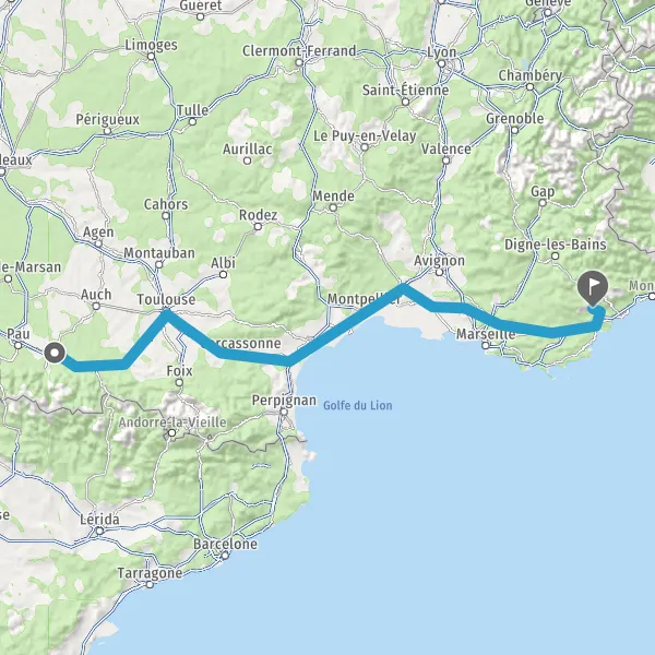 Prendre à droite et rejoindre A64. Continuer sur 141 kilomètres
