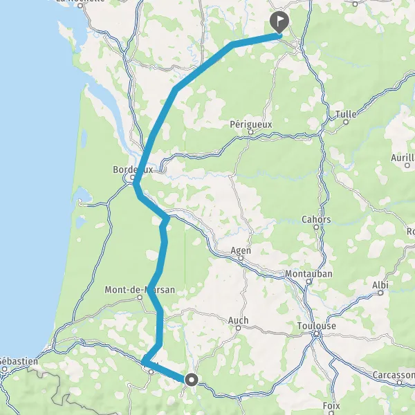 Prendre à droite et rejoindre A65. Continuer sur 150 kilomètres