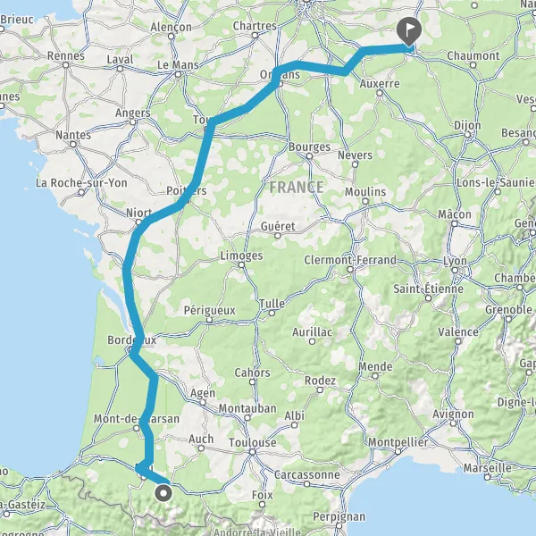 Prendre à droite et rejoindre A65. Continuer sur 150 kilomètres