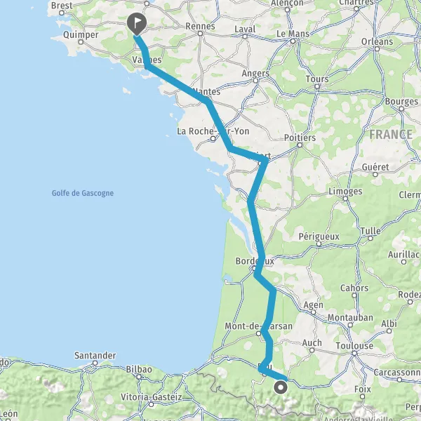 Prendre à droite et rejoindre A65. Continuer sur 150 kilomètres