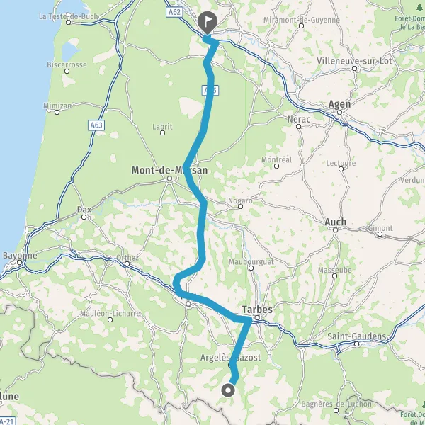 Prendre à droite et rejoindre A65. Continuer sur 150 kilomètres