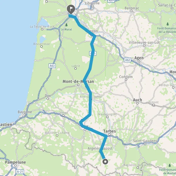 Prendre à droite et rejoindre A65. Continuer sur 150 kilomètres