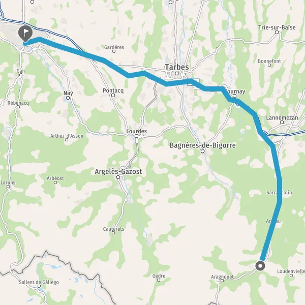 Prendre à droite et rejoindre A64 E80. Continuer sur 40 kilomètres