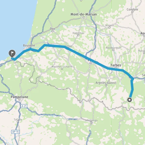 Continuer et rejoindre A64 E80. Continuer sur 174 kilomètres