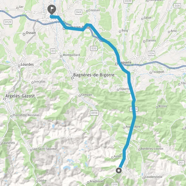 Au rond-point, prendre la 2ème sortie sur D19 (Route de Vieille Aure) et continuer sur 400 mètres