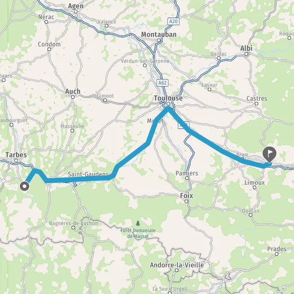 Continuer et rejoindre A64 E80. Continuer sur 129 kilomètres