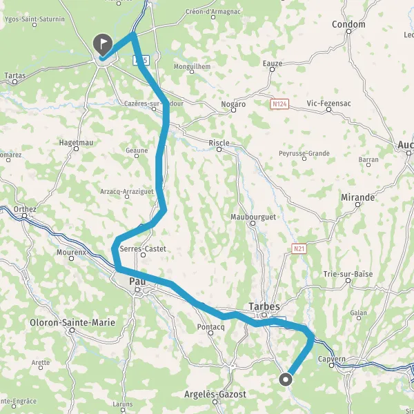 Prendre à droite et rejoindre A64 E80. Continuer sur 62 kilomètres