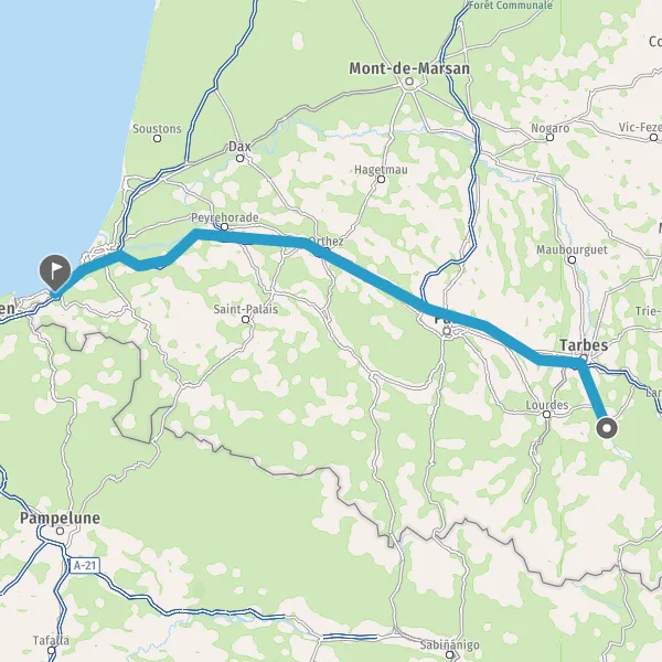 Continuer et rejoindre A64 E80. Continuer sur 121 kilomètres