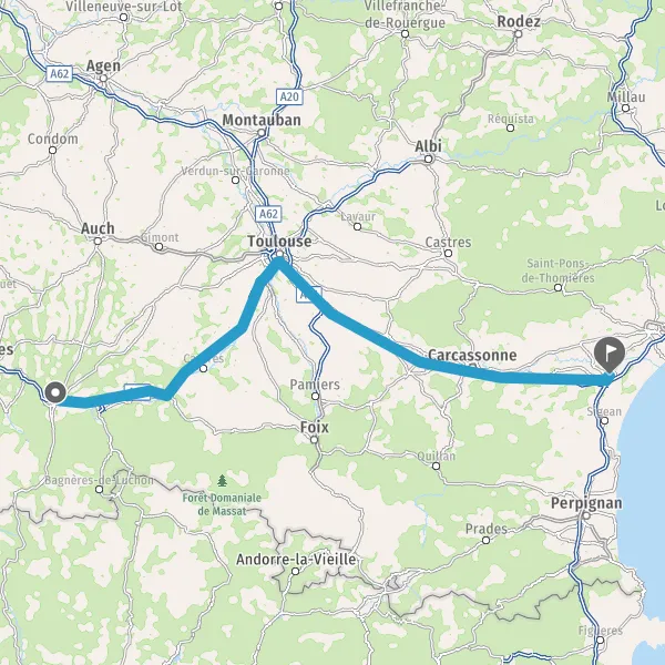 Prendre à droite et rejoindre A64 E80. Continuer sur 111 kilomètres