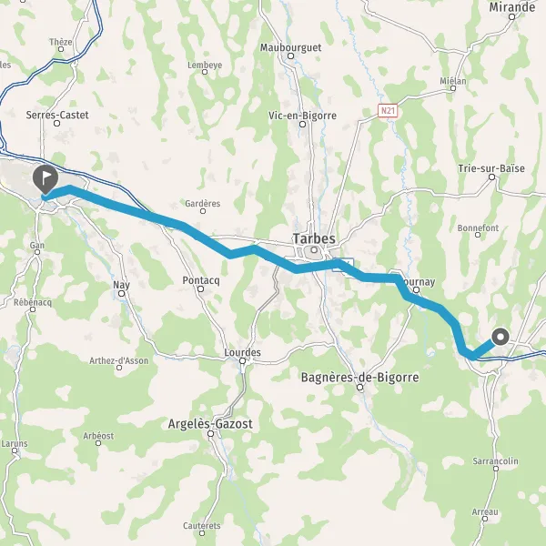 Continuer et rejoindre A64 E80. Continuer sur 53 kilomètres