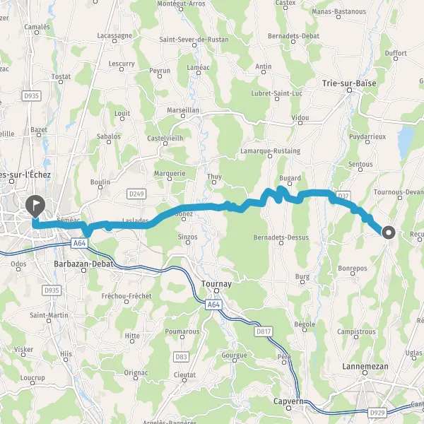 | Distance en voiture | 36,3 km à 47,7 km |