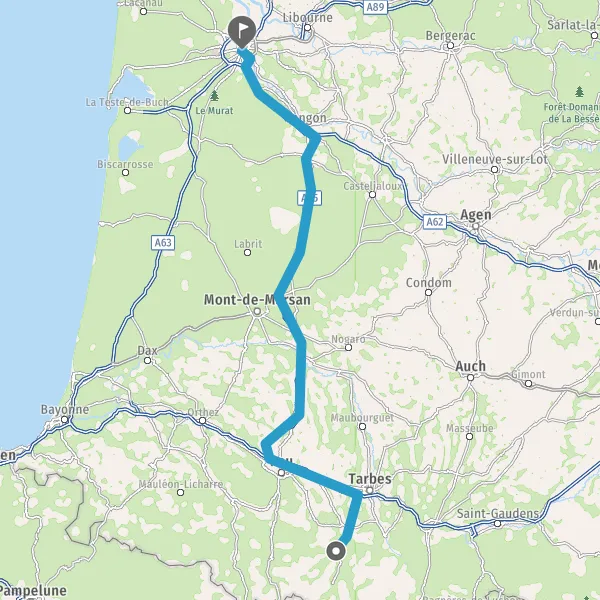 Prendre à droite et rejoindre A65. Continuer sur 150 kilomètres