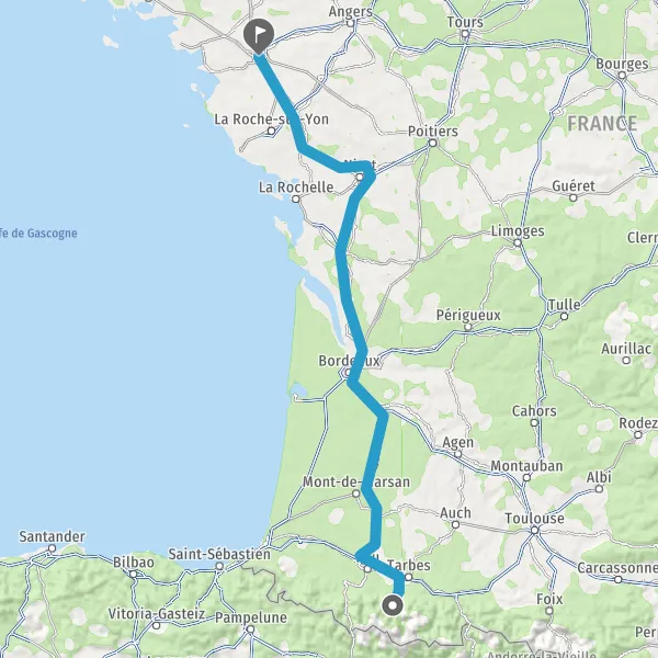 Prendre à droite et rejoindre A65. Continuer sur 150 kilomètres