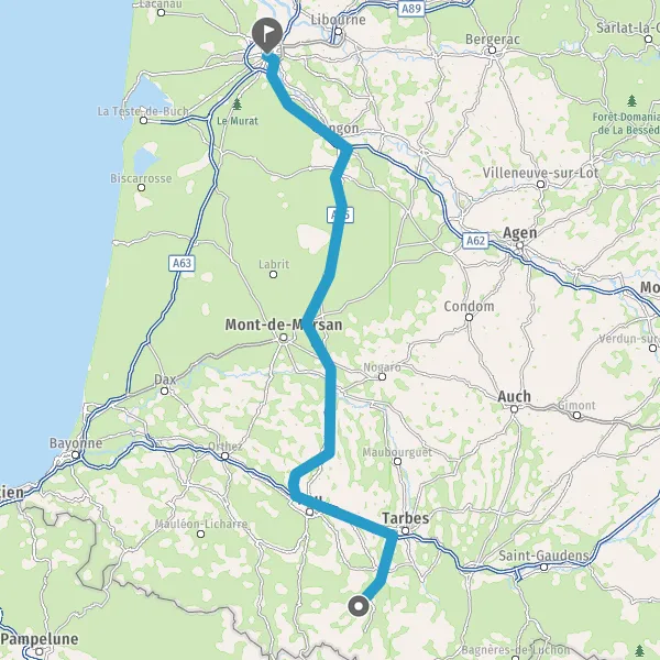Prendre à droite et rejoindre A65. Continuer sur 150 kilomètres