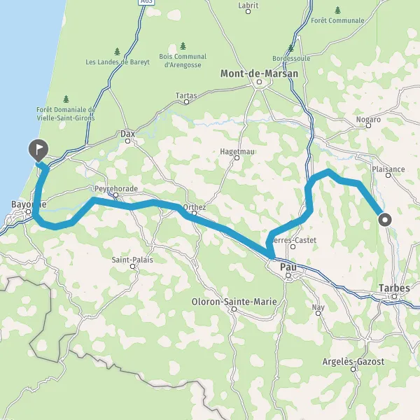 Prendre à droite et rejoindre A63. Continuer sur 17 kilomètres