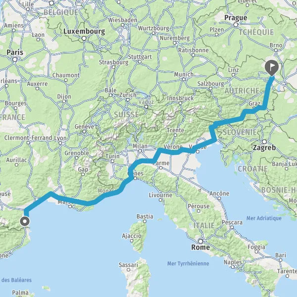 Payer 1,50 € (Péage Saint Isidore Pleine Voie) Payer 3,40 € (Péage La Turbie Pleine Voie) 466 km