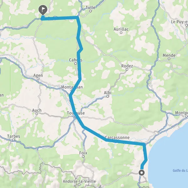 Prendre à droite et rejoindre A61 E9. Continuer sur 15 kilomètres