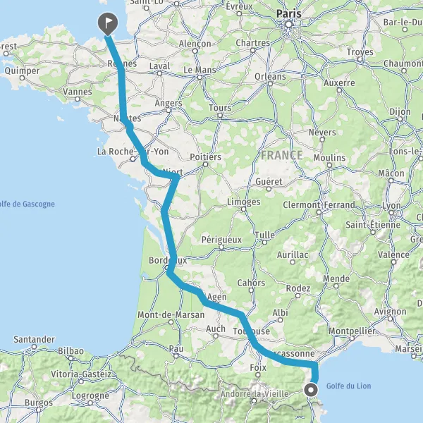 Prendre à droite et rejoindre A83. Continuer sur 150 kilomètres
