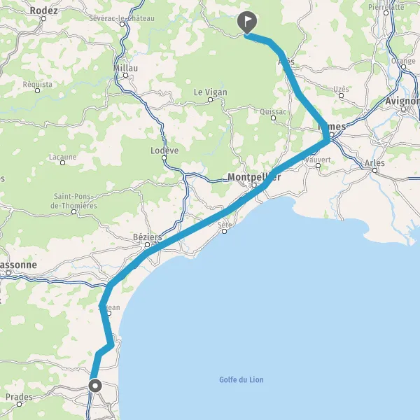 Au rond-point, prendre la 3ème sortie sur N106 (Route d'Alès) et continuer sur 27 kilomètres