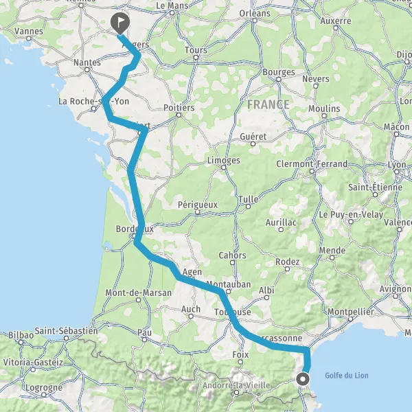 Prendre à droite et rejoindre A87. Continuer sur 105 kilomètres