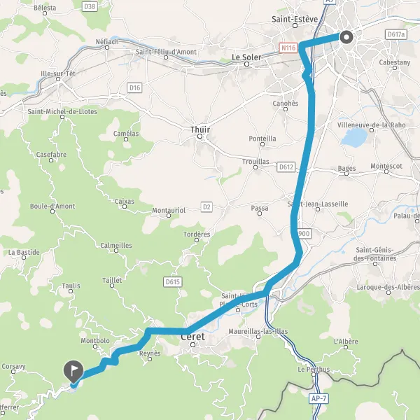 Au rond-point, prendre la 1ère sortie sur D115 (Avenue du Vallespir) et continuer sur 1,4 kilomètre