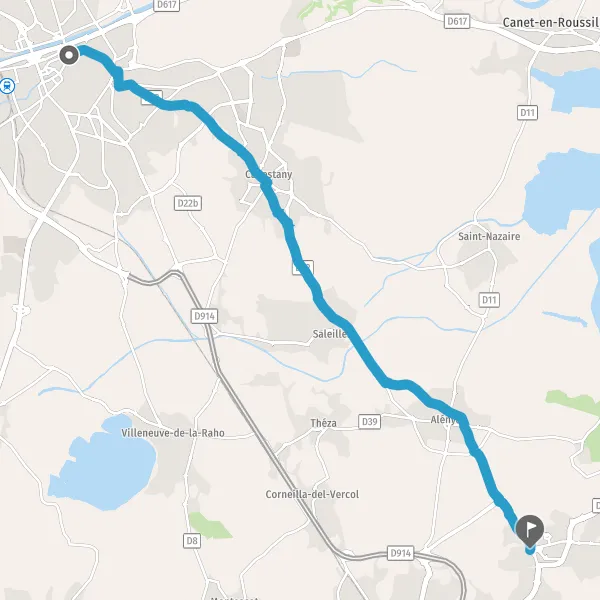 Au rond-point, prendre la 2ème sortie sur D22 (Route de Saleilles) et continuer sur 1,5 kilomètre