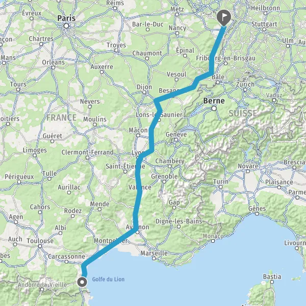 Prendre à droite et rejoindre A36 E60. Continuer sur 185 kilomètres
