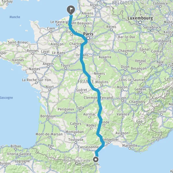 Prendre à droite et rejoindre A75. Continuer sur 624 kilomètres
