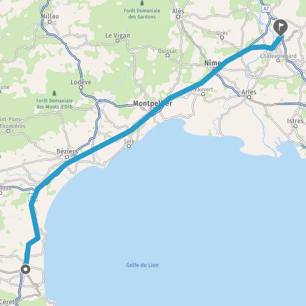 Prendre à droite et rejoindre A9. Continuer sur 211 kilomètres