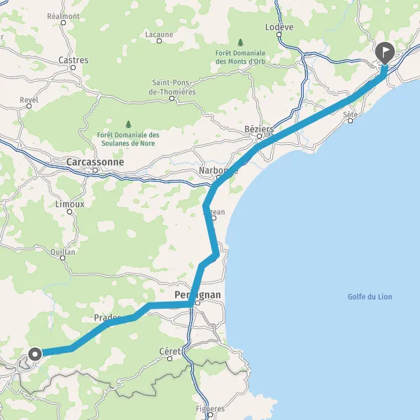 Prendre à droite et rejoindre A9. Continuer sur 132 kilomètres