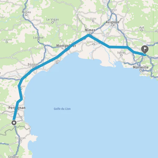 Continuer et rejoindre A9 E15. Continuer sur 216 kilomètres