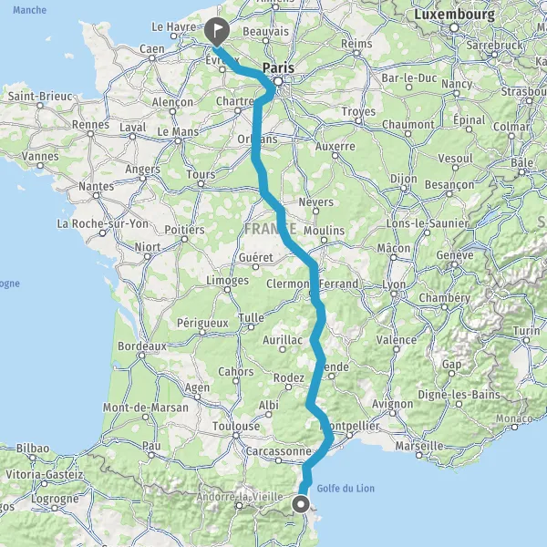 Prendre à droite et rejoindre A75. Continuer sur 624 kilomètres