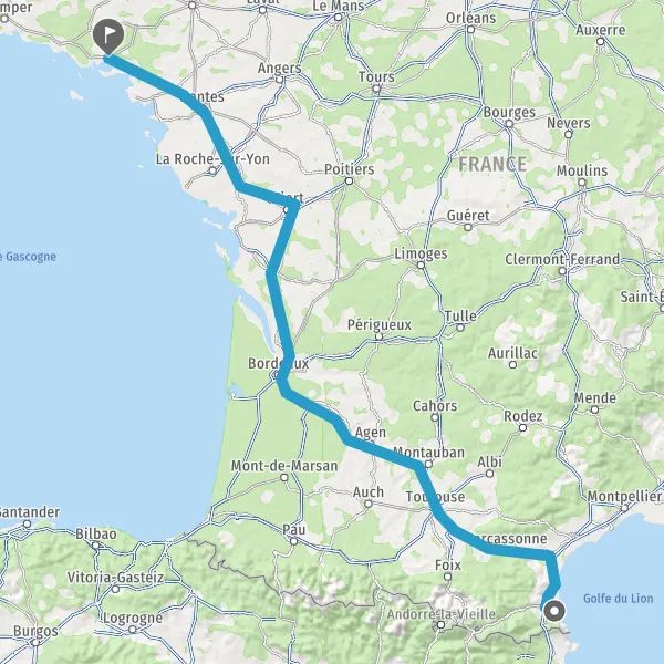 Prendre à droite et rejoindre A83. Continuer sur 150 kilomètres