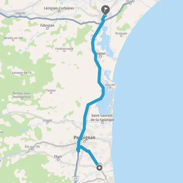 Continuer et rejoindre A9 E15. Continuer sur 61 kilomètres