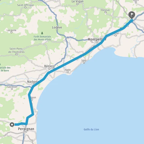 Prendre à droite et rejoindre A9. Continuer sur 186 kilomètres