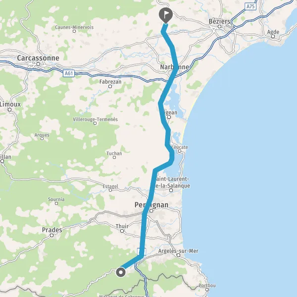 Continuer et rejoindre A9 E15. Continuer sur 77 kilomètres