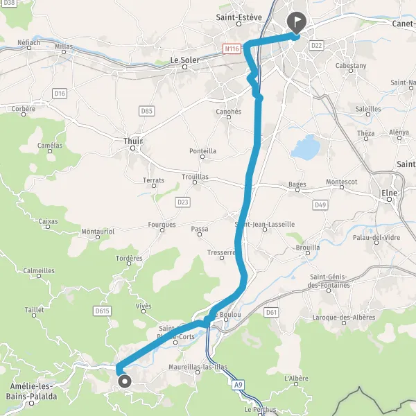 Au rond-point, prendre la 2ème sortie sur D900 (Route Nationale N9) et continuer sur 3,8 kilomètres